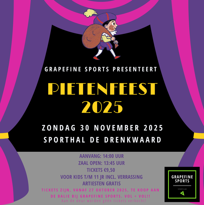 Wij organiseren deze zondag ons PietenFeest in sporthal de Drenkwaard.